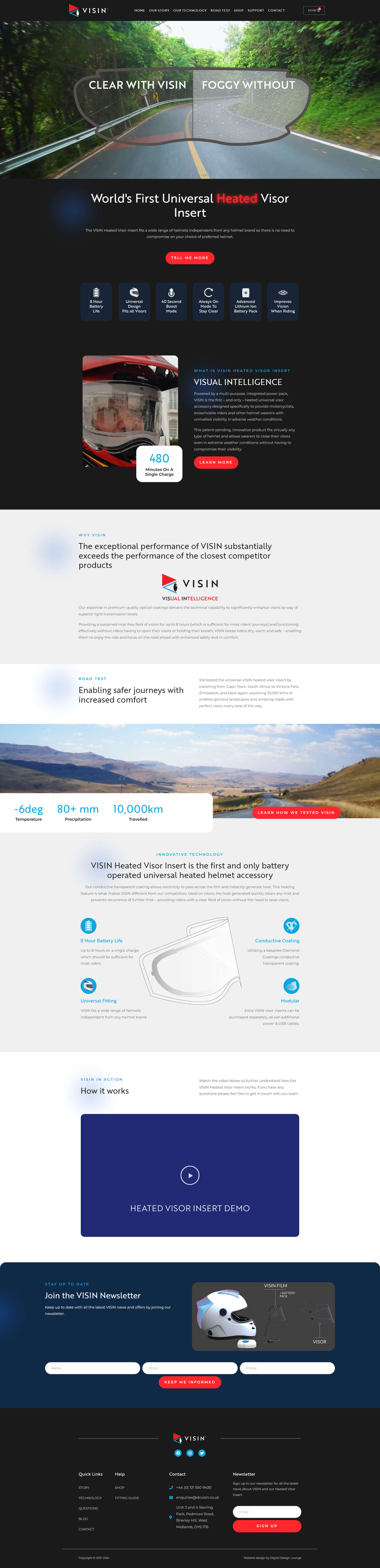 The new Visin Heated Visor website needed to work just as seamlessly on a mobile device as well as larger devices. The site was built using a feature-rich content management system allowing for additional content to be added easily as required. The hero banner uses a video to instantly explain to the user what the product does as soon as they land on the website.