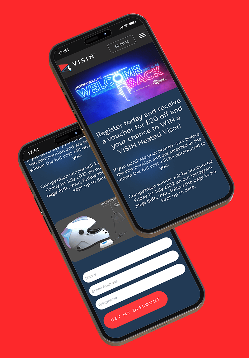 Visin was also going to be promoted at motorcycle shows around the country and a custom QR Code was created which led to specific landing pages so people could get a show discount when purchasing and enter a competition to win a visor. Pages were only accessable if people scanned the QR code at the time of the show.